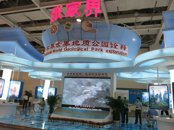 由本次博览会主办方湖南省政府特批的张家界世界地质公园形象厅以一幅幅美艳神奇的代表性景区景点图片,直观地诠释了张家界世界地质公园“张家界地貌”的地质构造和成因;以美轮美奂的自然风景和地质构造,完整地勾勒出张家界地貌从台地--方山--石墙--石柱--峡谷的演化过程。整个展厅将大自然的鬼斧神工与其科研价值、旅游应用价值完美融合,以独特的魅力展示着张家界世界地质公园“张家界地貌”赏心悦目的审美境界和独一无二的科学内涵,吸引着全世界的宾客纷至沓来,产生了深远的影响。