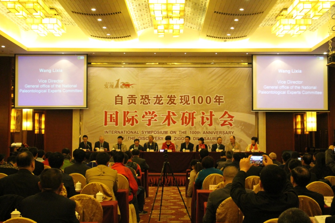 “自1915年美国地质学家劳德伯克(G.D.Louderback)在自贡荣县发现第一枚恐龙化石开始,截止2015年,自贡恐龙的发掘、研究与保护已走过百年历程。百年来,得益于国内外众多地质学家、古生物学家在这里默默耕耘、潜心研究,自贡地区已累计发现古生物化石遗迹近200处,采集到上千个古脊椎动物个体、数亿万计的骨骼化石。其中恐龙种类数量约占全国的1/7,是我国最重要的恐龙化石产地,也是世界上最重要的古生物化石产地之一。为了纪念自贡恐龙这风雨兼程的一百年,“自贡恐龙发现100年国际学术研讨会”于15-17日在自贡世界地质公园举办。