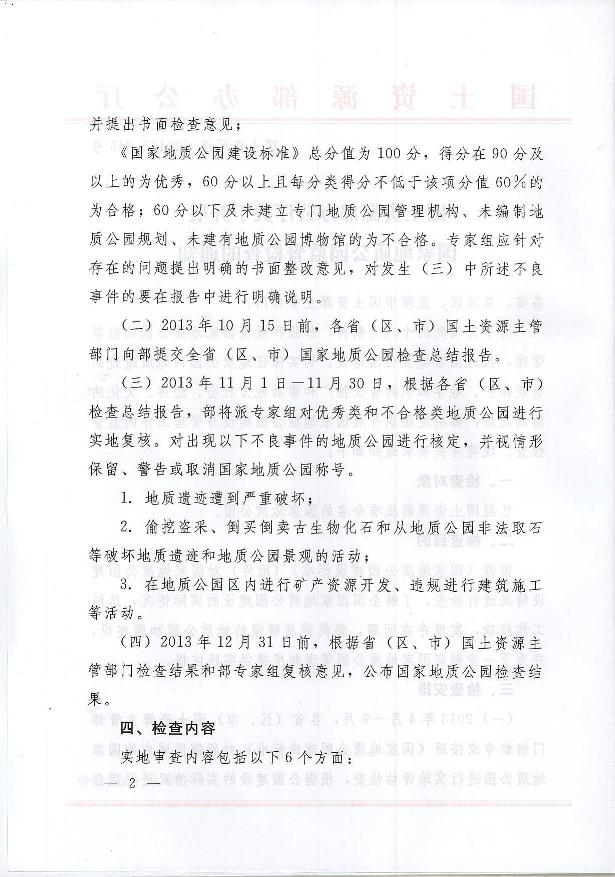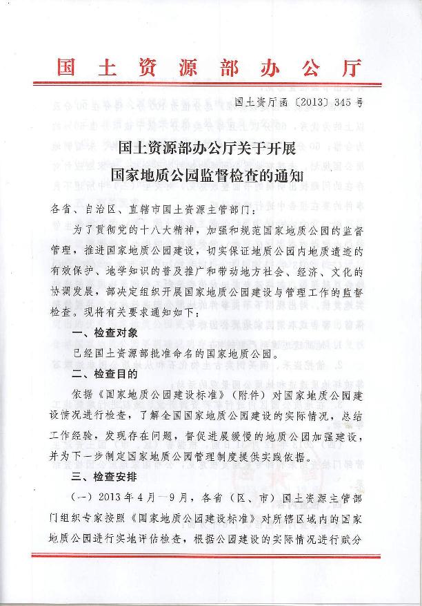关于进行世界地质公园及国家地质公园建设工作总结的函