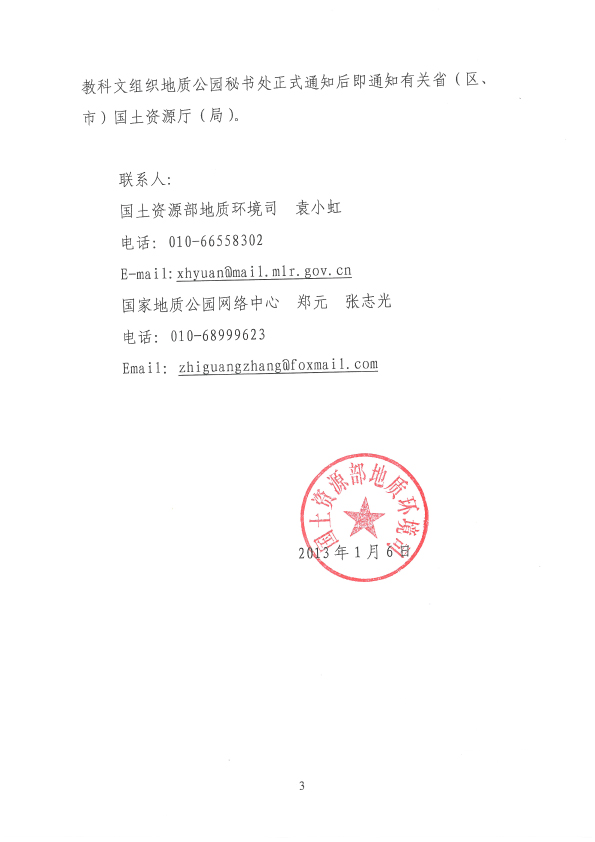 第六届国际地质公园大会在加拿大召开的函