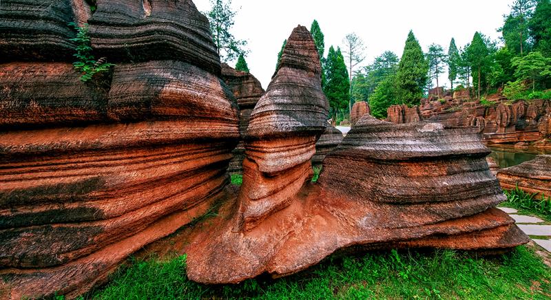 湘西地质公园位于中国湖南省湘西土家族苗族自治州,面积2710平方千米。公园地处云贵岩溶高原东部边缘斜坡地带,以全球寒武系标准层型剖面——古丈阶与排碧阶“金钉子”,世界上规模最大的红色碳酸盐岩石林和蔚为壮观的高原切割型台地-峡谷群等地质遗迹为主要特色,兼有典型的地质构造事件、古冰川气候事件与古生物遗迹等诸多典型地质现象,完整记录了扬子地台演化历史以及云贵高原边缘切割-破碎-解体过程。园区古朴的少数民族文化与台地-峡谷、自然生态完美结合,构成自然、优美、和谐的人居环境,共同造就了神秘独特的武陵山区民族生态文化圈。